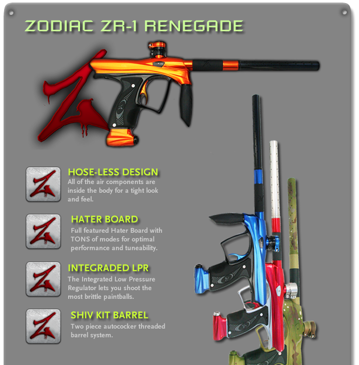 yea Introducing the Zodiac Renegade ZR-1 Top shelf electro-pnumatic spool valve paintball marker